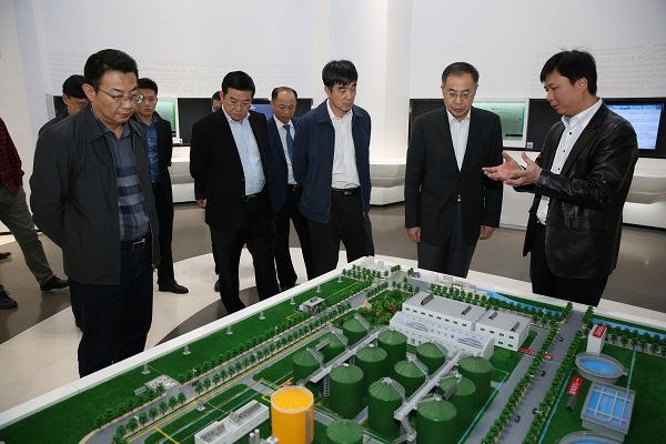 ▲中德金屬集團董事長吳克東向工信部領導一行介紹入園項目建設情況