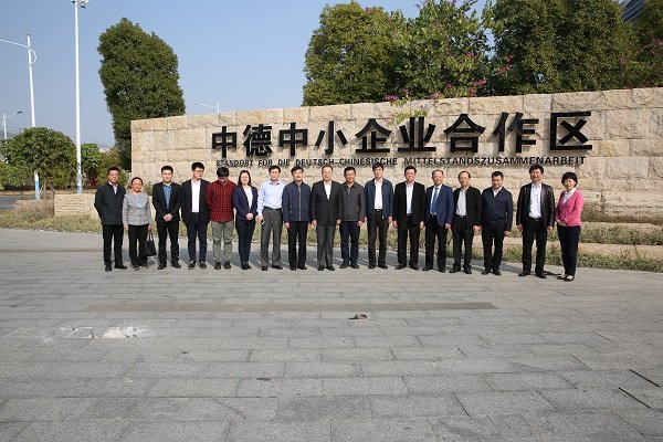 ▲參會領導及合作區(qū)代表等一行在中德金屬生態(tài)城合影