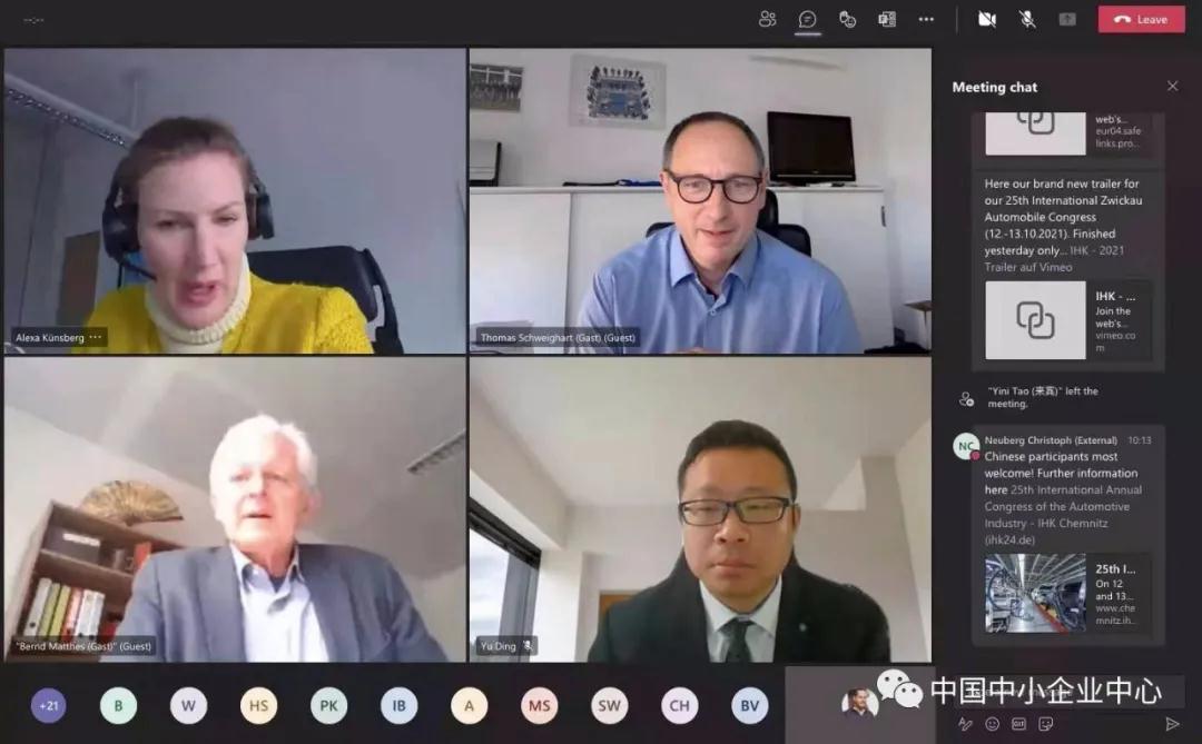△ 中國中小企業(yè)中心(德國)與開姆尼茨工商會(huì)企業(yè)家們召開線上對話會(huì)
