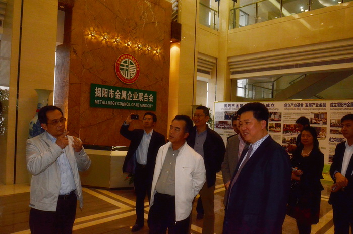 2013年4月10日,廣東省金融辦副主任劉小輝一行,在揭陽(yáng)市市長(zhǎng)助理麥延厚、市金融工作局局長(zhǎng)江少明的陪同下,蒞臨揭陽(yáng)市金屬企業(yè)聯(lián)合會(huì)調(diào)研指導(dǎo)。雙方在聯(lián)合會(huì)舉行了交流座談會(huì)。