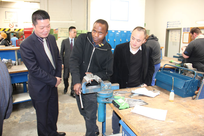 代表團(tuán)在沙爾平先生的介紹下,深入考察了德國的職業(yè)教育體系,先后參觀了黑森-圖林根大區(qū)工會下屬的職業(yè)技術(shù)學(xué)校海因里希-克萊因爾學(xué)校,實(shí)地參觀了德國職業(yè)技術(shù)學(xué)校教學(xué)現(xiàn)場。德國學(xué)生經(jīng)過培訓(xùn)后達(dá)到的高超技藝,給代表團(tuán)留下了深刻印象,并立即與相關(guān)部門達(dá)成了職業(yè)教育培訓(xùn)合作意向,為揭陽創(chuàng)辦產(chǎn)業(yè)技術(shù)應(yīng)用大學(xué)積累了寶貴的合作資源。