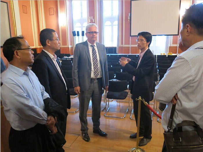 16日上午,代表團(tuán)抵達(dá)WISTA管理公司開始展開培訓(xùn)。WISTA公司總裁Hardy Schmitz先生對(duì)代表團(tuán)的到來(lái)表示歡迎。在簡(jiǎn)要敘述了培訓(xùn)流程后,WISTA公司對(duì)外事務(wù)部紐曼博士詳細(xì)介紹了Adlershof科技園的發(fā)展情況、總體規(guī)劃以及不同階段的園區(qū)定位,并與代表團(tuán)做進(jìn)一步的交流探討。隨后,代表團(tuán)現(xiàn)場(chǎng)播放了中德金屬生態(tài)城的宣傳片,全面展示項(xiàng)目的發(fā)展進(jìn)程,還充分解答了WISTA公司關(guān)于項(xiàng)目的SWOT分析方面提出的大量問(wèn)題。