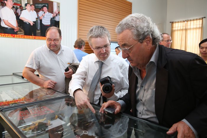 迪特•洪德一行參觀項(xiàng)目展廳的中德合作企業(yè)先進(jìn)產(chǎn)品