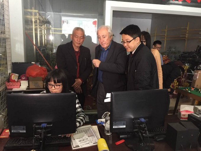 在揭期間,Hassler教授還為跨境電商產(chǎn)業(yè)園區做指導培訓工作,為跨境電商展示領(lǐng)域提供咨詢(xún)和建議,同時(shí)對廣東中德電子商務(wù)有限公司和特色德國店線(xiàn)上+線(xiàn)下的銷(xiāo)售模式進(jìn)行指導。