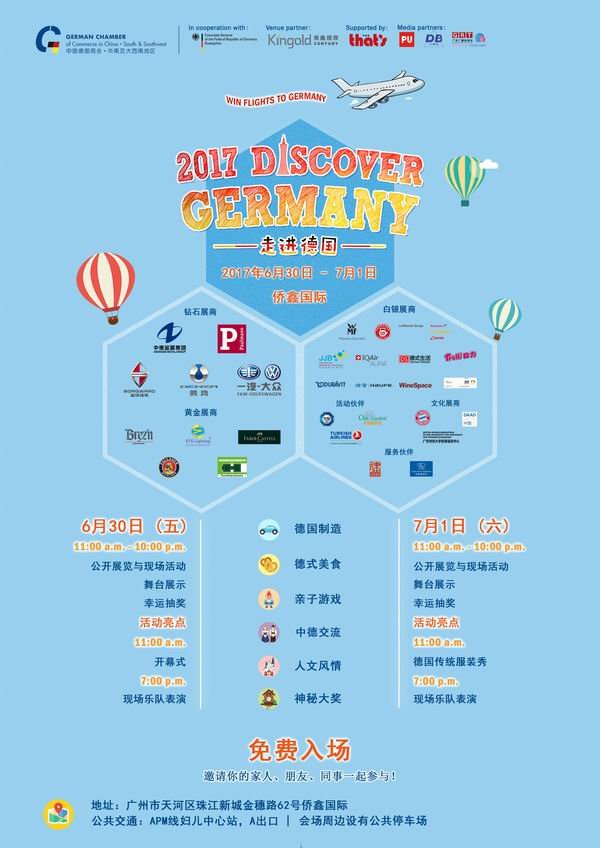 本次活動(dòng)特邀贊助及合作單位名單包括大眾、戴姆勒、漢莎、拜仁慕尼黑等世界頂級品牌,著(zhù)重于與德國相關(guān)的企業(yè)、產(chǎn)品、創(chuàng )新、旅游、教育以及飲食文化的展示,為中國公眾提供深入了解德國品牌與德國文化。