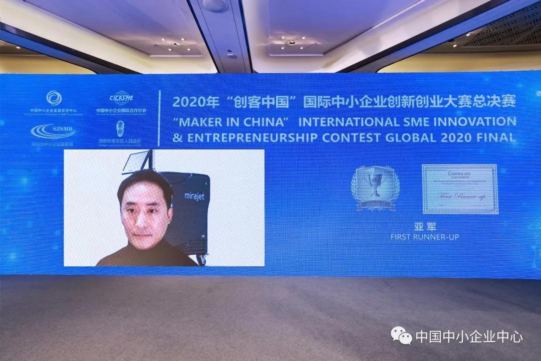 近日,由工業(yè)和信息化部中小企業(yè)發(fā)展促進(jìn)中心、中國中小企業(yè)國際合作協(xié)會(huì )、深圳市中小企業(yè)服務(wù)局及深圳市寶安區人民政府共同主辦,深圳灣區中小企業(yè)國際創(chuàng )新交流中心、中小企業(yè)國際創(chuàng )新聯(lián)盟、中國中小企業(yè)中心(德國)等共同承辦的2020年“創(chuàng )客中國”國際中小企業(yè)創(chuàng )新創(chuàng )業(yè)大賽總決賽在深圳市圓滿(mǎn)收官。