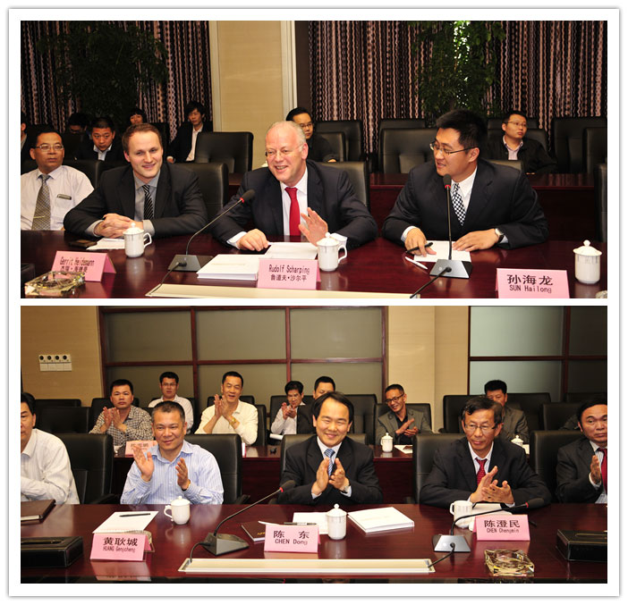 揭陽(yáng)市委書(shū)記陳綠平、市長(cháng)陳東分別對魯道夫·沙爾平先生一行再次蒞揭表示歡迎,稱(chēng)贊此次沙爾平先生再次率領(lǐng)精英團隊訪(fǎng)揭,共同商討雙方合作的具體事宜,充分體現了沙爾平先生與揭陽(yáng)的深厚友誼和對雙方合作的高度重視。