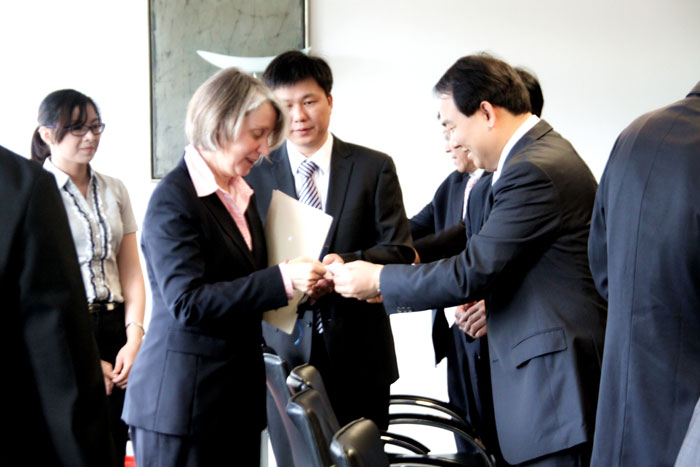 2013年7月4日,在與剛離任的德國駐華大使施明賢博士友好會(huì )談時(shí)隔一個(gè)月后,揭陽(yáng)市長(cháng)陳東再次帶領(lǐng)揭陽(yáng)代表團在北京拜訪(fǎng)德國駐華大使館,與德國大使館公使、經(jīng)濟處主任貝雅德女士等大使館官員就中德金屬生態(tài)城合作事宜展開(kāi)深入會(huì )談。會(huì )談中,貝雅德公使同意在金屬加工技術(shù)、職業(yè)教育合作等方面為中德兩國合作牽線(xiàn)搭橋。