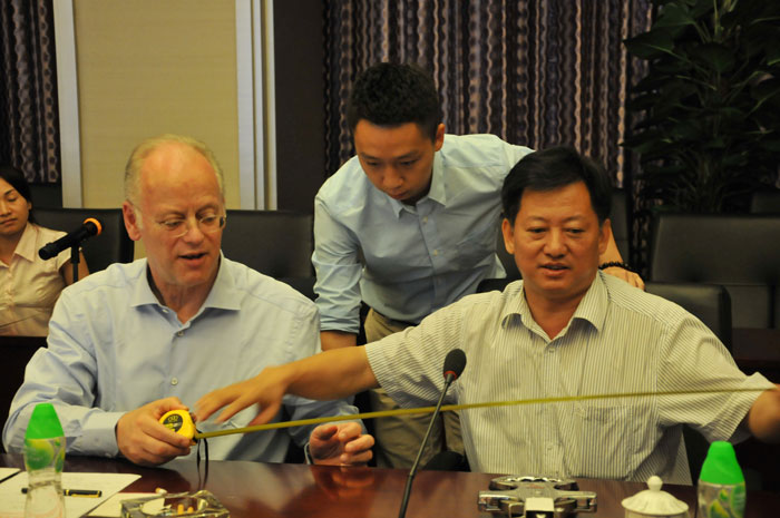 隨著(zhù)中德合作日臻成熟,企業(yè)對接順利開(kāi)展,2013年7月11日下午,德國前國防部長(cháng)、德國社民黨前主席、RSBK魯道夫沙爾平戰略咨詢(xún)交流有限責任公司總裁魯道夫·沙爾平先生再次飛赴揭陽(yáng),與揭陽(yáng)市金屬企業(yè)聯(lián)合會(huì )進(jìn)行新一輪會(huì )談,商討進(jìn)一步落實(shí)中德合作成果。揭陽(yáng)市長(cháng)陳東,揭陽(yáng)市金屬企業(yè)聯(lián)合會(huì )會(huì )長(cháng)吳克東,執行會(huì )長(cháng)林眾偉,高級顧問(wèn)曹白雋,以及林曉平、孫耿豪、黃烈標、周凱練、周潮開(kāi)等金屬企業(yè)家共同出席本輪會(huì )談。