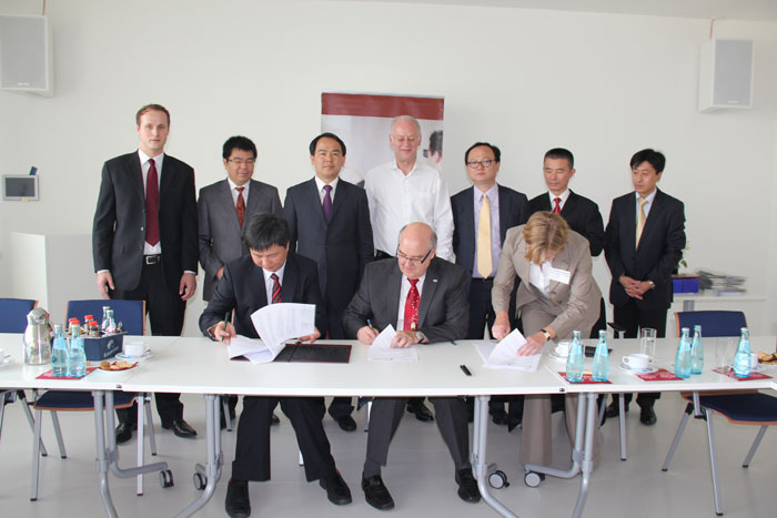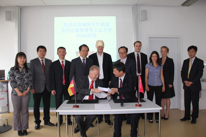 揭陽(yáng)市金屬企業(yè)聯(lián)合會(huì )吳克東會(huì )長(cháng)與達姆施塔特應用科技大學(xué)校長(cháng)Stengler教授簽訂職業(yè)教育合作框架協(xié)議