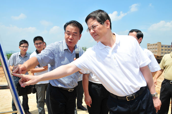 徐少華副省長(cháng)(右二)在中德大道建設現場(chǎng)聽(tīng)取建設規劃匯報