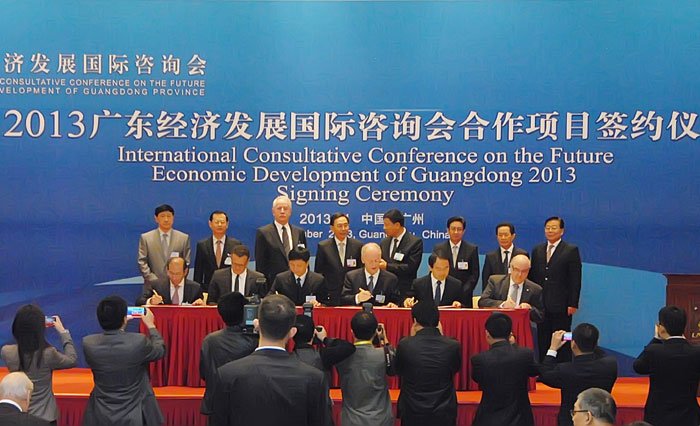 南方日報訊 (記者/黃穎川 實(shí)習生/蔣昱思)昨日,2013廣東經(jīng)濟發(fā)展國際咨詢(xún)會(huì )舉行了簡(jiǎn)單而隆重的合作項目集體簽約儀式。值得注意的是,作為拓展國際咨詢(xún)會(huì )功能的有益嘗試,本次簽約活動(dòng)是廣東經(jīng)濟發(fā)展國際咨詢(xún)會(huì )自1999年創(chuàng )辦以來(lái)首次舉行的合作項目集中簽約。