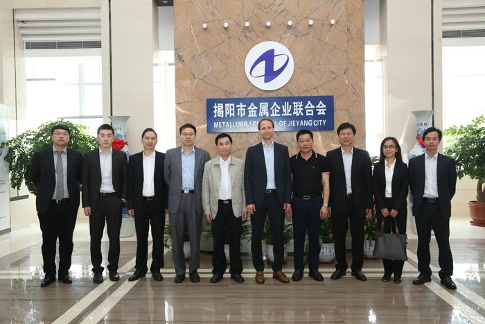 在市金屬企業(yè)聯(lián)合會(huì )就項目合作座談后,史偉浩一行與市領(lǐng)導、中德金屬集團相關(guān)領(lǐng)導合影