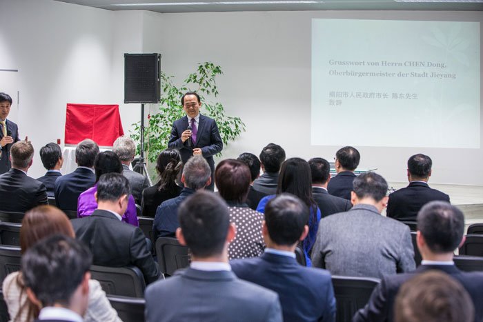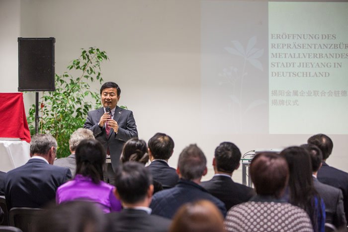 揭陽(yáng)市金屬企業(yè)聯(lián)合會(huì )駐慕尼黑代表處揭牌儀式現場(chǎng)