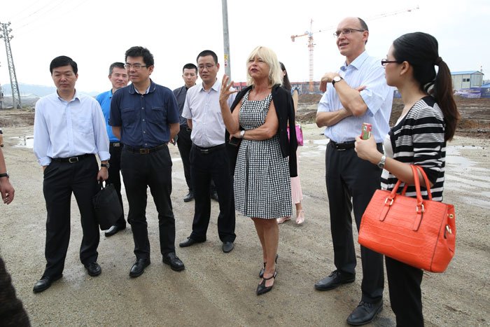 恩格爾•科樂(lè )一行現場(chǎng)考察中德金屬生態(tài)城,并詳細詢(xún)問(wèn)園區建設情況