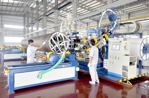 作為中德金屬生態(tài)城首批入駐的中德合資企業(yè),保庫智能將把德國保庫豐富的應用經(jīng)驗特別是城市地下蓄洪管網(wǎng)和反滲排水管網(wǎng)的應用帶到中國,這將有助于把傳統的現代化城市升級成可智能利用水資源的“海綿型”城市,其市場(chǎng)十分廣闊。該項目的第一條生產(chǎn)線(xiàn)正在進(jìn)行最后調試,預計12月份即可正式投產(chǎn)。在公司的遠期計劃中,這種采用德國先進(jìn)設備和工藝、具有節能環(huán)保等特點(diǎn)的生產(chǎn)線(xiàn)還將增加至5條,預計年產(chǎn)量2萬(wàn)噸,年產(chǎn)值超6億元。