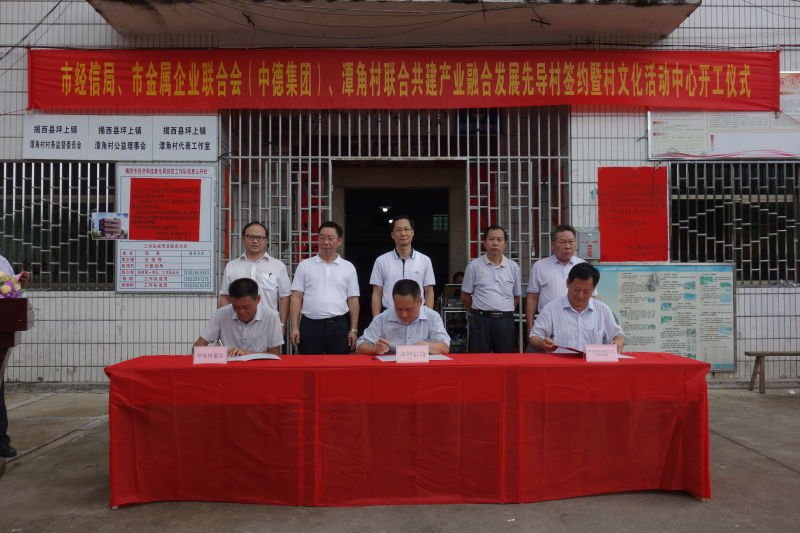 根據揭陽(yáng)市委、市政府關(guān)于動(dòng)員市社會(huì )組織參與精準扶貧的指示精神,9月6日上午,市經(jīng)信局、市金屬企業(yè)聯(lián)合會(huì )、中德金屬集團與揭西縣坪上鎮潭角村聯(lián)合舉行共建產(chǎn)業(yè)融合發(fā)展先導村簽約暨村文化活動(dòng)中心開(kāi)工儀式,爭取把該村打造成揭陽(yáng)互聯(lián)網(wǎng)+精準扶貧、精準脫貧的示范村,推動(dòng)貧困戶(hù)早日脫貧致富。